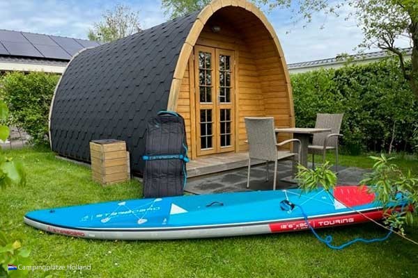 - Camping Pods: Für eine romantische Erfahrung gibt es zwei gemütliche Pods, jeweils für zwei Personen. Diese Pods verfügen über eine Kochnische, einen kleinen Kühlschrank und ein eigenes WC, was ein luxuriöses Campingerlebnis am Wasser ermöglicht.