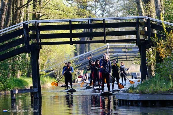 Dank der Lage von Camping d'Hof am Bovenwiede-See ist dieser perfekt für diverse Wassersportliebhaber. Camping d'Hof verfügt über eine Surfschule, in der Gäste das Windsurfen oder Stand-Up-Paddling (SUP) erlernen können. Vom Surfstrand aus gelangt man direkt aufs Wasser. Zudem können Kanus, Kajaks sowie elektrische Boote und Schaluppen für eine wunderschöne Tour durch Giethoorn und den Nationalpark Weerribben-Wieden gemietet werden.
